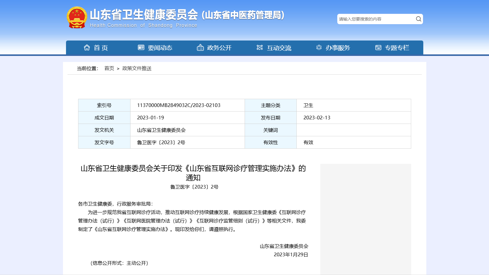 《關于印發互聯網診療管理辦法(試行)等3個文件的通知》國衛醫發[2018]25號